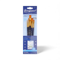 Kuas lukis set dari Giorgione, kuas dengan bulu sintetis nilon. Tangkai kuas berwarna, cocok digunakan untuk berbagai media lukis seperti cat air, akrilik, minyak atau Gouache.  Paket ideal bagi seniman hobi, pelajar seni atau sebagai tambahan koleksi kuas Anda.