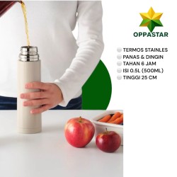 Dibuat dari bahan stainless steel food-grade, tahan karat, dan aman digunakan. Tutupnya memiliki sistem easy-pour sehingga Anda bisa menuang tanpa membuka seluruh tutup, menjaga suhu minuman tetap stabil.
